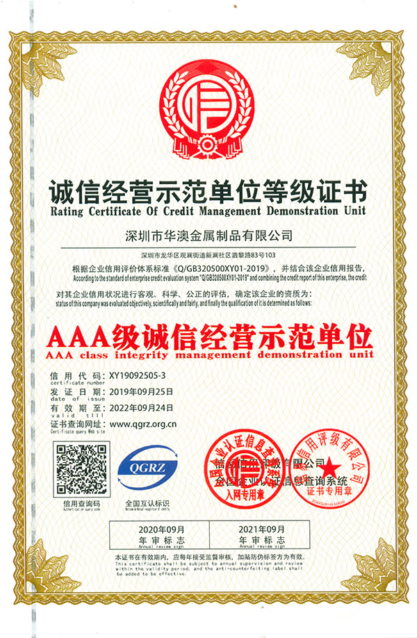 深圳市華澳金屬制品有限公司成立于2011年,擁有20多人的研發(fā)團(tuán)隊(duì),10+年專注金屬原材料生產(chǎn)經(jīng)驗(yàn),主打產(chǎn)品系列包含:鋁合金系列、不銹鋼系列、鈦合金系列,并通過(guò)ISO質(zhì)量管理體系認(rèn)證9001:2015,產(chǎn)品符合“SGS"、"RoHS"環(huán)保認(rèn)證。